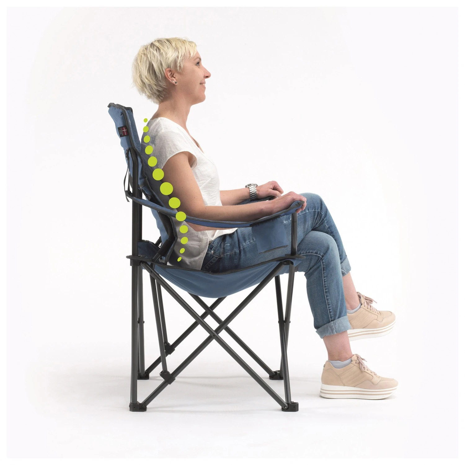 Eine höhenverstellbare Armlehne und getrennte Sitzelemente an Sitz und Rücken machen den Kielder von Outwell zu einem besonders komfortablen Campingstuhl!