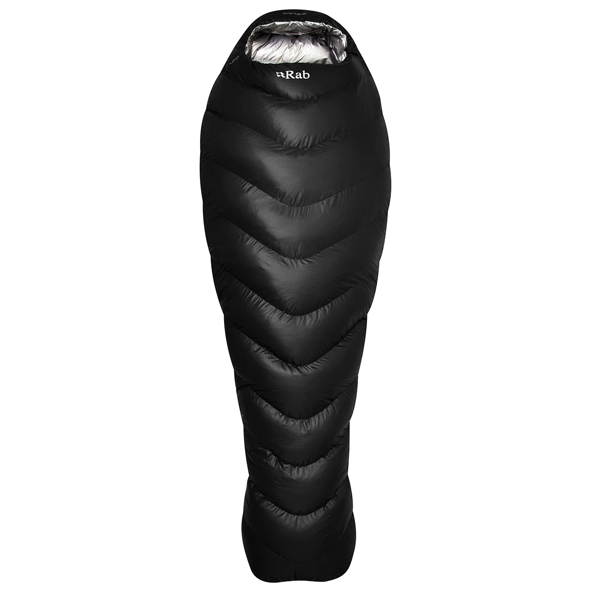 Gefüllt wurde das wertige Stück von Hand mit europäischer Gänsedaune aus artgerechter Tierhaltung am Rab Produktionsstandort Derbyshire (England).Die komfortable Mumienform mit Wärmekragen und 3D-Kapuze bettet den Kopf in angenehm weiche, warme Daunen und schützt ihn ohne einzuengen. Ein abgewinkelter Fußbereich hält die unterste Körperpartie angenehm warm und bietet dabei ausreichende Bewegungsfreiheit für die Beine.